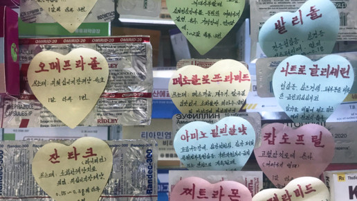 Spätestens in der Apotheke hält sich der Pharmazeut nicht mehr daran. Zufällig kommt er an dem Betrieb vorbei. Die Apotheke liegt in der Nähe eines Restaurants, das die Gruppe besucht. „Von außen hat man nicht erkannt, dass es dort Arzneimittel gibt.“ Nur ein Schild mit einem stilisierten grünen Kreuz und koreanischen Schriftzeichen verweist auf den Eingang zur Offizin. Hinter den vergitterten Fenstern befindet sich ein kahler Raum mit Glasvitrinen und einem Tresen.