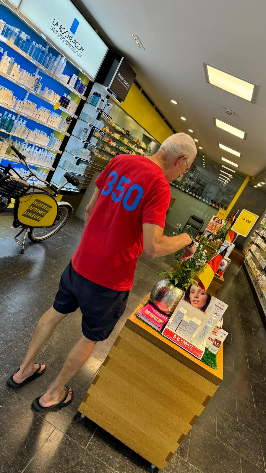Die Brüder versorgten die Kundinnen und Kunden mit ihren Jubiläums-T-Shirts. Denn die Amtsapotheke feiert 350. Bestehen. Sie wird in achter Generation geführt. „Die 9. Generation steht schon in den Startlöchern“, sagt Wuth, dessen Tochter derzeit im Praktischen Jahr ist. Sein Neffe ist bereits Approbierter. Am kommenden Samstag wird das Jubiläum beim Altstadtfest mit einem Tag der offenen Tür gefeiert.