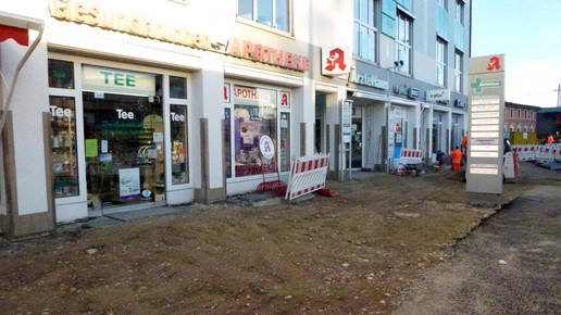 Scheerer hat naturgemäß Schwierigkeiten, die Beweggründe von Kunden, die nicht mehr bei ihm kauften, zu „belegen“. Während in den Jahren 2008 bis 2014 vor seiner Haustür Bayerns drittgrößter Bahnhof und ein riesiges, seltsam galaktisch anmutendes Einkaufszentrum entstanden, blieben danach in seiner Offizin immer mehr Kunden weg. Kein Wunder: Wenn der Fußweg beschwerlich ist, man nicht weiß, welche Zufahrtsstraße heute wohl frei ist, und man befürchtet, keinen Parkplatz zu bekommen, fährt man sicherheitshalber eher zur Konkurrenz. Betroffen waren die täglich rund 1000 Patienten von 40 Arztpraxen im Viertel, darunter Fachärzte der Orthopädie und Onkologie. „Das sind Patienten, die unter Schmerzen leben und dankbar sind, wenn es nach der Behandlung oder der Infusion zum Parkplatz oder nächsten Taxistand nach dem Arztbesuch nur ein paar Schritte sind. Aber auch der Taxistand wurde verlegt, danach lag er noch weiter entfernt“, so Scheerer.