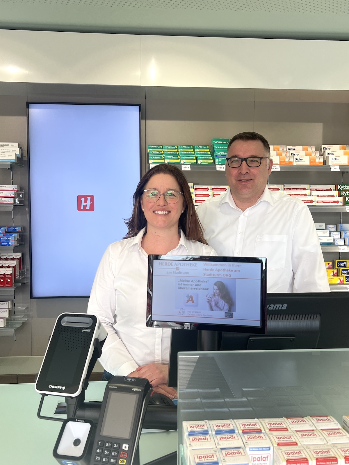 2011 entschieden sich die Geschwister Herde, die Apotheke als OHG zu übernehmen. „Es muss natürlich eine Betriebsgröße sein, die zwei Familien ernähren kann.“ Um dies auch für die Zukunft zu sichern, investierten beide drei Jahre später gemeinsam mit den ansässigen Mediziner:innen in ein Ärztehaus und eröffneten dort neu. Der alte Standort wurde geschlossen. „Das war die beste Entscheidung überhaupt“, so der 48-Jährige. „Im Ort sind wir beide das Gesicht der Apotheke.“