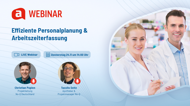 Diesmal werden Referenten zum Thema „Personalplanung und Arbeitszeiterfassung“ aufzeigen, wie die Verwaltung von Mitarbeiter:innen effizient gestaltet werden kann und die gesetzlich vorgeschriebene Pflicht zur Arbeitszeiterfassung am besten umgesetzt wird. Im APOTHEKE ADHOC Webinar werden die Referenten Christian Popien (Projektleiter No-Q Deutschland) und Tassilo Seitz (Apotheker) den gesamten Prozess der Schichtplanung begleiten. Apothekeninhaber:innen haben über das No-Q-Portal die Möglichkeit, viele Faktoren zu Arbeitsverhältnissen einzupflegen. Zudem werden Mitarbeiter:innen immer auf dem Laufenden gehalten, wenn sich innerhalb dieser Planarbeitszeiten etwas ändert.