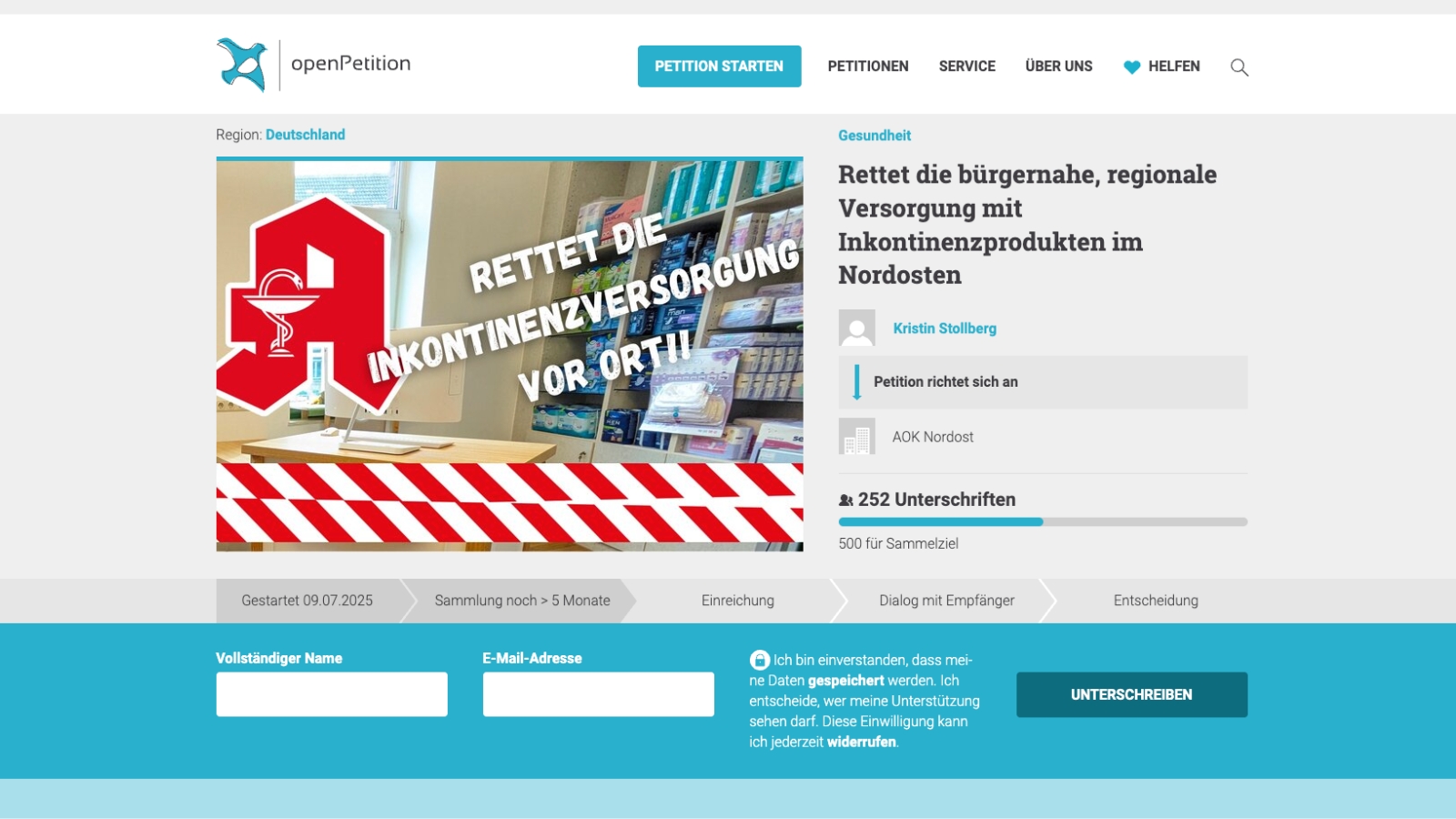 Kristin Stollberg, Inhaberin der Recknitz-Apotheke in Ribnitz-Damgarten (Mecklenburg-Vorpommern), hat eine Petition gestartet, um gegen den neuen Inkontinenz-Vertrag der AOK Nordost zu protestieren. „Die Politik in den Bundesländern muss die AOK Nordost für diese diskriminierenden Hürden in die Schranken weisen“, fordert die Apothekerin in ihrem Aufruf – und erntet dafür nicht nur Unterschriften, sondern auch Zuspruch.