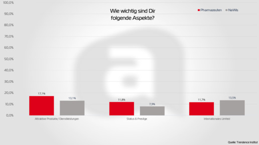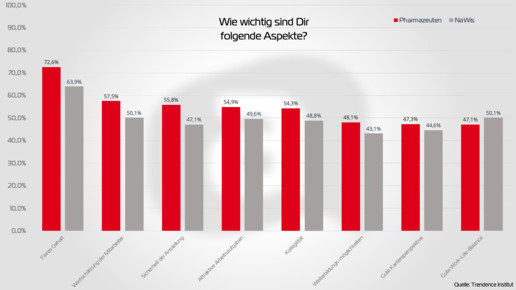 Was denkt der akademische Nachwuchs über Gehalt, No-Go‘s im Job und favorisierte Arbeitgeber? Das Marktforschungsinstitut Trendence befragt dazu seit 20 Jahren Absolventen verschiedenster Fachrichtungen. Ein Ergebnis: Unter den naturwissenschaftlichen Studenten ist den Pharmazeuten das künftige Gehalt am wichtigsten.
