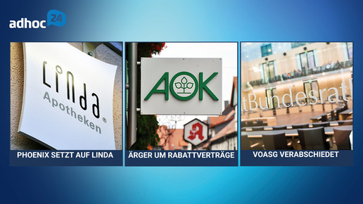 Phoenix will mehr auf die Apothekenkooperation Linda setzten und eine Gesundheitsplattform aufbauen. Die neuen AOK-Rabattverträge sorgen für Ärger. Und das Vor-Ort-Apothekenstärkungsgesetz wurde vom Bundesrat verabschiedet. Diese und weitere wichtige Meldungen des Tages bei adhoc24.