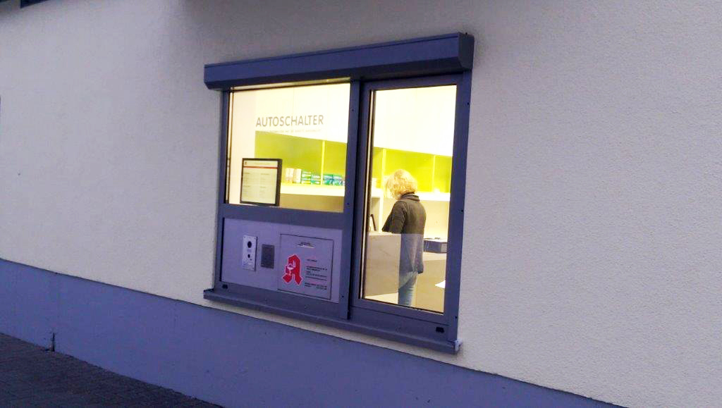 Bereits 1999 gab es in Deutschland einen ersten Vorstoß, einen Autoschalter in einer Ulmer Apotheke einzurichten. Doch der Inhaber scheiterte an der damaligen Apothekenbetriebsordnung (ApBetrO). Erst sechs Jahre später, im Jahr 2005, stellte das Bundesverwaltungsgericht (BVerwG) dann aber vor dem Hintergrund des mittlerweile zugelassenen Versandhandels klar, dass Außenschalter einer Apotheke keinen Verstoß gegen die ApBetrO darstellten.
