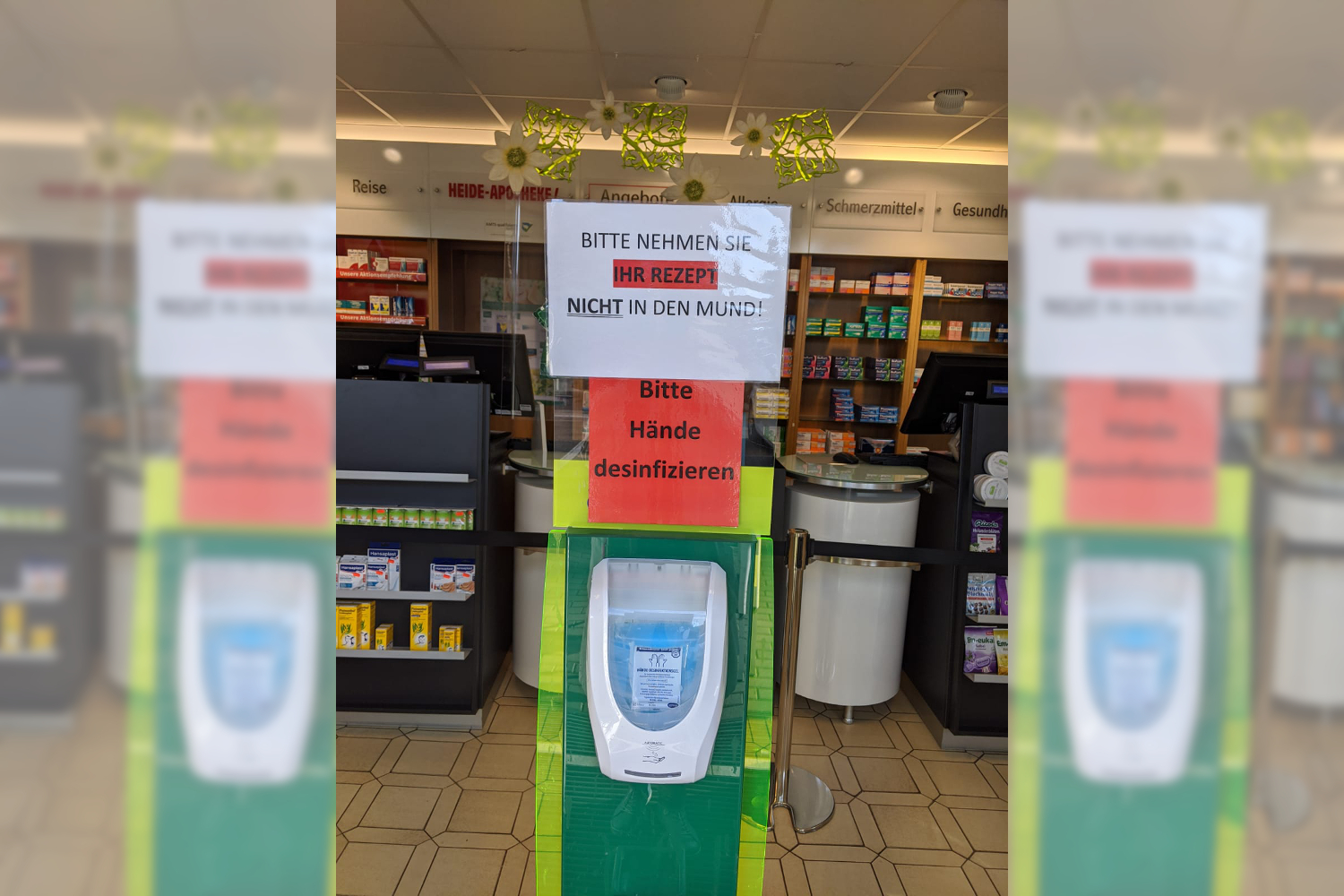 Dirk Buckenberger, Inhaber der Alten Apotheke in Bad Segeberg, kennt das Problem. „Ich bin immer ganz erstaunt, wie viele automatische Bewegungen man so im Alltag übernimmt“, meint er. Auch bei ihm stecken sich das Rezept in den Mund, um das Angebot zum Desinfizieren der Hände zu nutzen. „Das ist so ziemlich das schlimmste was man machen kann.“ Und leider keine Ausnahme. Deshalb klebte auch Buckenberger einen Zettel an den Spender: „Wer das Rezept oder Geldscheine in den Mund nimmt, zahlt 5 Euro Strafe in die Spendendose vom Kinderhospiz.“