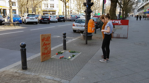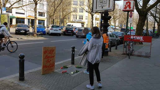 Apothekerin Sandra Kraatz sagt: „Menschen haben heute vor der Apotheke Blumen niedergelegt.“ Und ein selbst gebasteltes Papp-Plakat mit der Aufschrift #stilllovingtherevolution“ aufgestellt. Die Waage-Apotheke wurde im Jahr 1973 eröffnet, davor befand sich auf dieser Höhe des Kurfürstendamms ebenfalls eine Apotheke.