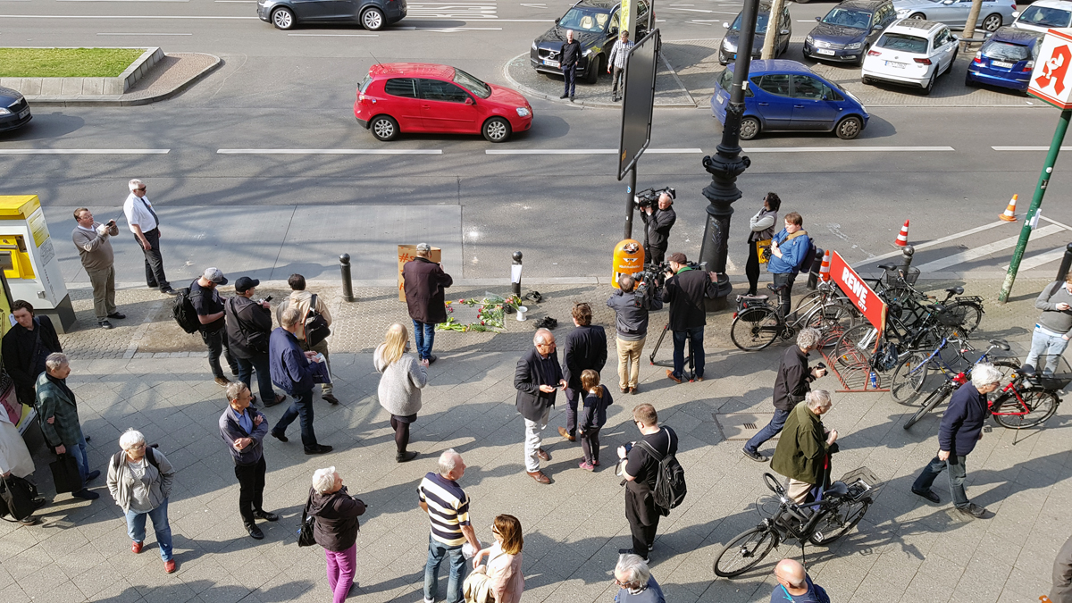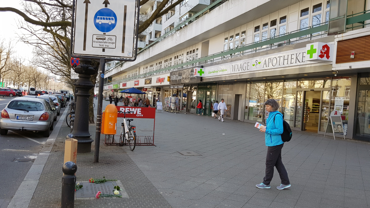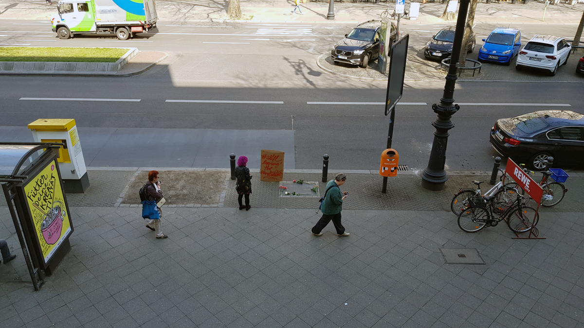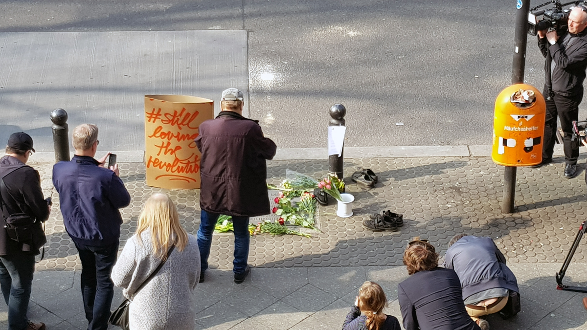 „Normalerweise ist hier nicht viel los“, sagt Kraatz, die von ihrem Büro im ersten Stock über der Apotheke auf den Gedenkort blicken kann. Aber heute gedenkt man des Mannes, der hier niedergeschossen wurde. Der Attentäter Josef Bachmann soll „Du dreckiges Kommunistenschwein!“ gerufen haben, bevor er den Abzug betätigte. Der Täter beging 1970 in Haft Suizid.