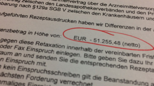 Eine Apothekerin aus Bad Oeynhausen muss hoffen, dass sie vor Schlimmerem verschont wird. Sie bekam Post von der AOK Hessen, Einschreiben mit Rückschein. Inhalt: Eine Retaxation in Höhe von 51.255,48 Euro. Dass die Sache vorab genehmigt wurde, hatte man verschusselt. Die Einigungsversuche laufen.