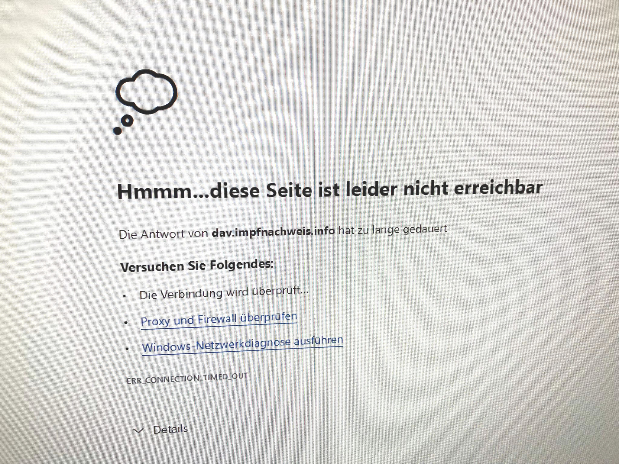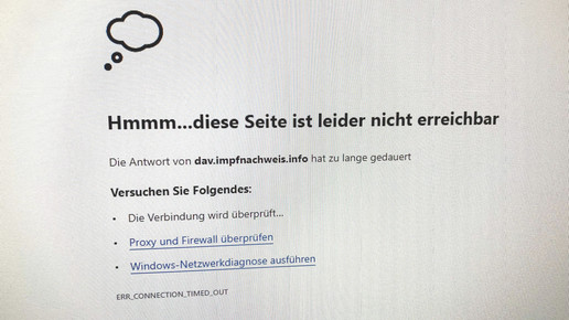 Das Apothekenportal des Deutschen Apothekerverbandes (DAV) ist nicht erreichbar. Probleme gebe es, wenn man wie sonst auch auf das Dashboard zugreifen wolle, sagt Grone. Wenn sie das Covid-19-Zertifizierungsportal anwählt, passiere nichts. „Es lädt gefühlt 100 Jahre.“ Dann komme die Meldung, dass die Seite dav.impfnachweis.info nicht erreichbar sei.