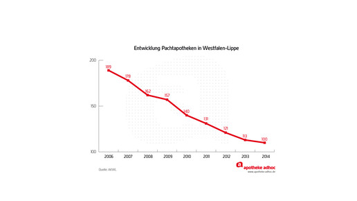 In den neuen Bundesländern gab es Ende 2014 laut Treuhand nur 21 verpachtete Apotheken. Insgesamt ist die Zahl rückläufig: Ende 2000 gab es in ganz Deutschland noch knapp 2100 Pachtapotheken, 33 davon in Ostdeutschland. Die Zahl der Neuabschlüsse ist laut Treuhand „eher rückläufig“ und bewegte sich in den vergangenen Jahren im einstelligen Bereich.