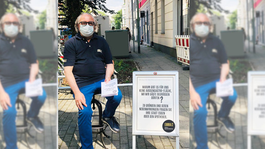 Seit Monaten geht es zwischen dem Gastronomen Rainer Podzuck und dem Apotheker Herbert Bas hin und her. Mittlerweile sind Anwälte eingeschaltet. Auch nach einer zwischenzeitlichen kleinen Versetzung des Testcontainers könnten keine Gäste außen sitzen, sagt Podzuck. Er müsse noch etwas weiter versetzt werden. Dass mit der Nähe zur Apotheke und der Internetverbindung argumentiert werde, lasse er nicht gelten. Jetzt hofft er, dass er abends nach Dienstschluss die Parkflächen des Testcontainers für die Bestuhlung nutzen kann.