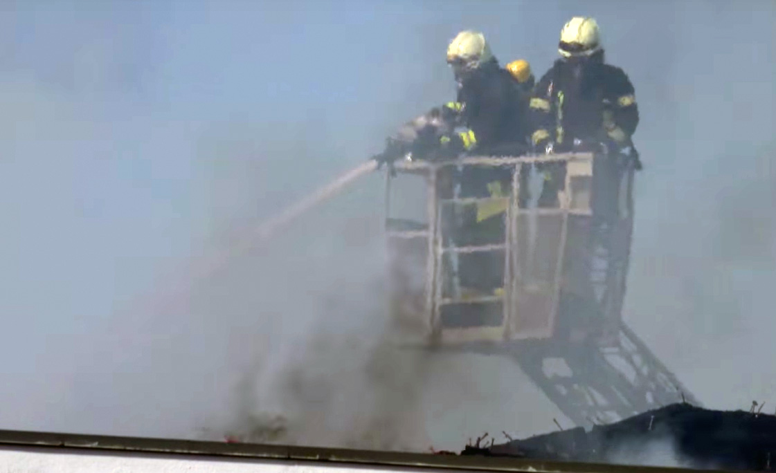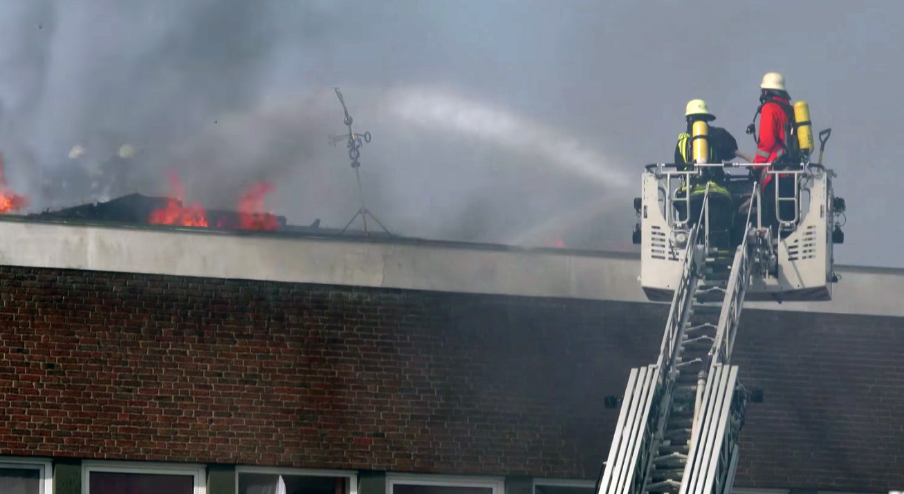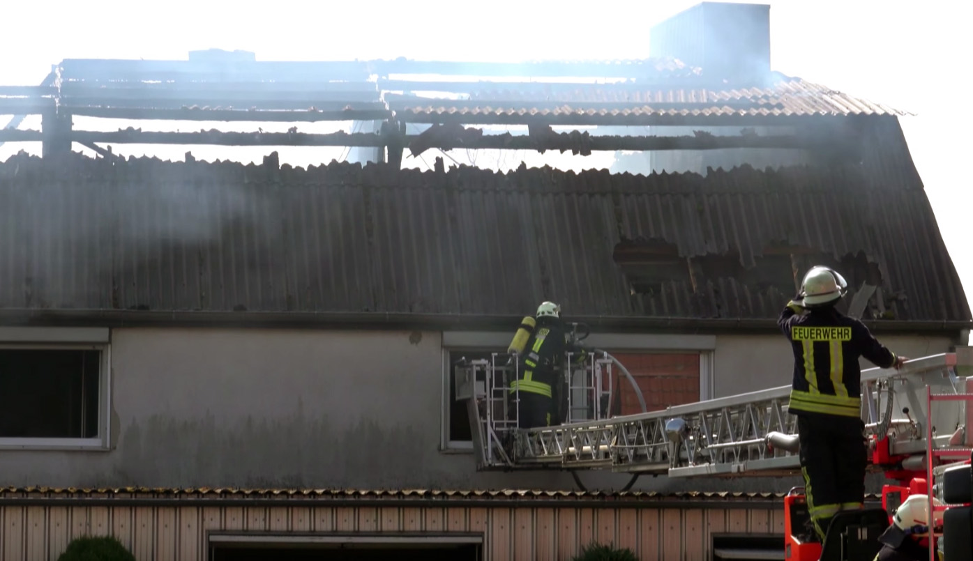 Nach Angaben einer Polizeisprecherin verunglückte ein Feuerwehrmann, als er eine im Obergeschoss eingeschlossene Frau retten wollte. Der Mann trug sie zu einer Drehleiter, doch im letzten Moment brach das Dach ein. Beide stürzten und kamen mit Knochenbrüchen schwer verletzt ins Krankenhaus. Ein weiterer Mann konnte sich selbstständig aus dem Gebäude befreien und wurde mit Verdacht auf eine Rauchgasvergiftung in ein Krankenhaus gebracht.