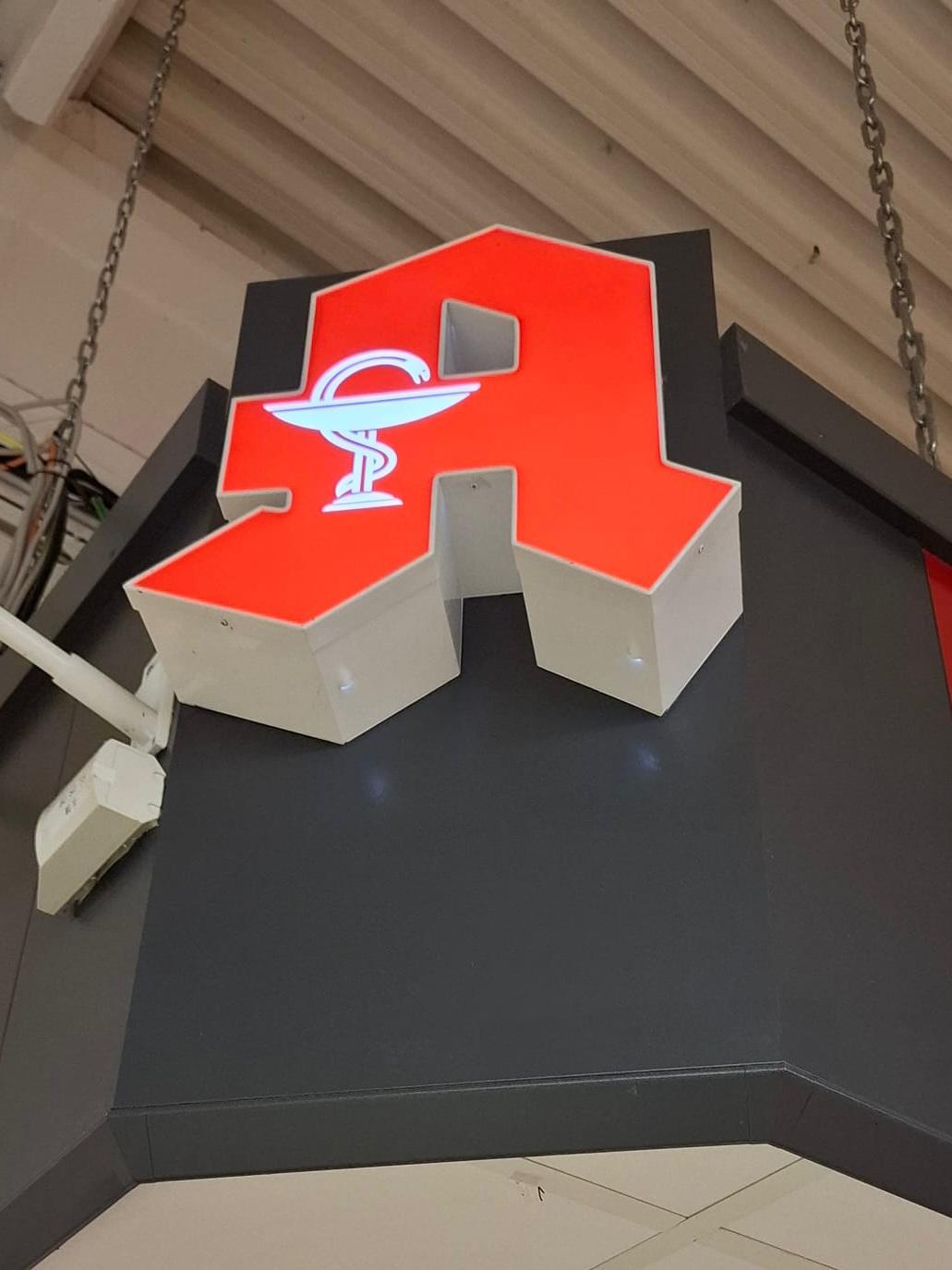 Noch hängt das Apotheken-A in einem Supermarkt in Herne – doch auch dieses letzte Zeichen der langjährigen Rezeptsammelstelle der Pinguin-Apotheke wird abgebaut. Inhaberin Dr. Kerstin Boje-Petzokat kämpfte lange für die Rezeptbox, der Streit ging bis vor das Bundesverwaltungsgericht (BVerwG). Doch zuletzt blieb der Rezeptkasten zu oft leer.