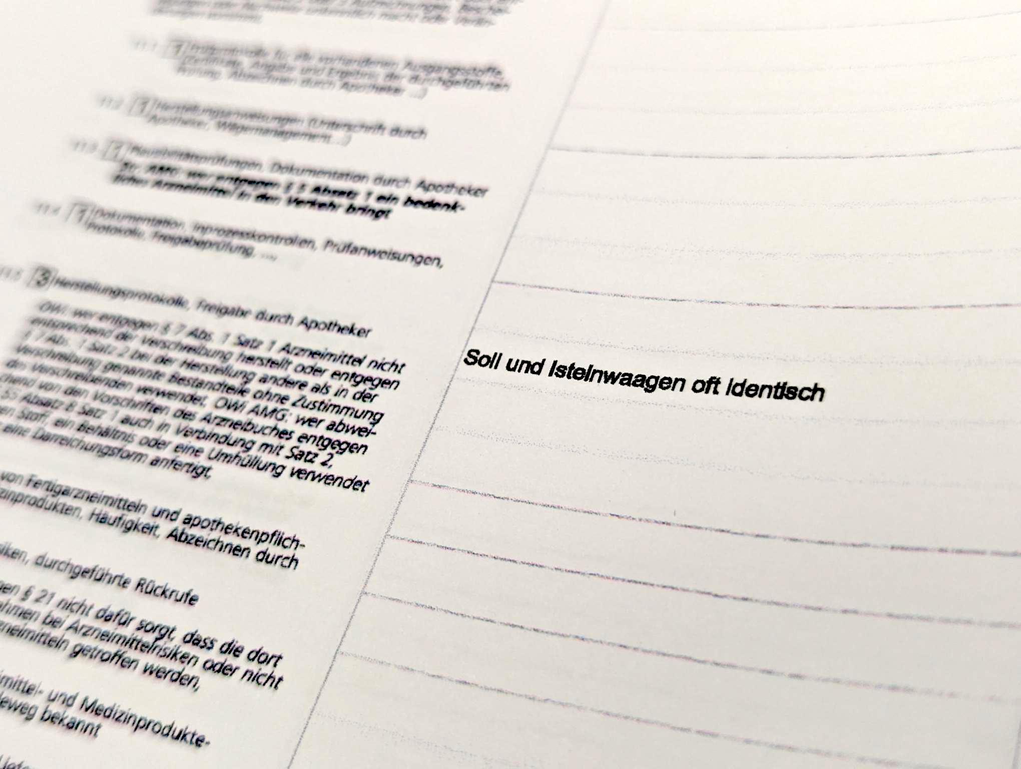 Noch irritierender war allerdings der Umstand, dass dem Revisor die Einwaagedaten in der Rezeptur zu genau waren. „Die Einwaage entsprach zu oft genau dem Wert, der eingewogen werden sollte. Uns wurde mitgeteilt, dass so genau niemand einwiegen könne“, erklärt ein Mitarbeiter.