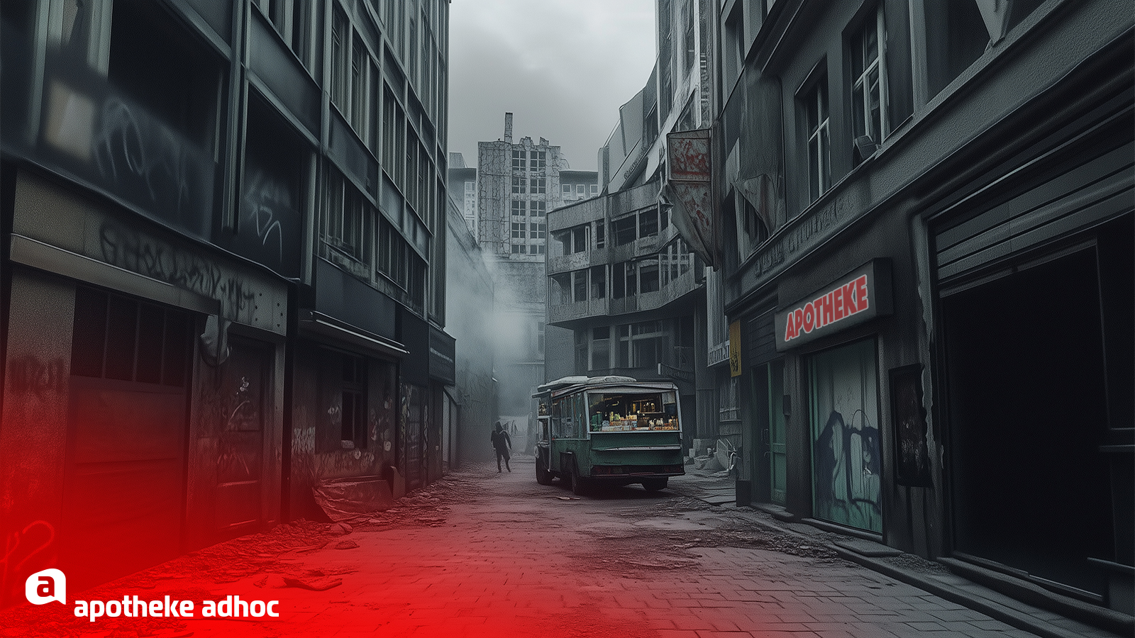 Joachim-Karsten von Beutelsberg steigt wie jeden Morgen aus dem Bus. Öffis – der Umwelt zuliebe. Für ihn wirkt das wie Hohn, wenn er durch die verdreckte Leere geht, die einmal seine Stadt war. Er ist auf dem Weg zur letzten verbliebenen Apotheke im Umkreis von 50 Kilometern – seiner eigenen.