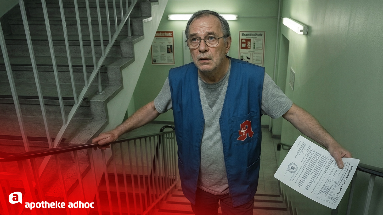 Samt Formular hievt sich der Bote erneut durchs Treppenhaus, als sein Telefon klingelt. „Manfred, es ist 15.30 Uhr durch“, ätzt Grubenbiegel am anderen Ende entnervt. „Die Kochschmidt hat schon dreimal angerufen, wo ist denn jetzt die Packungsbeilage?“