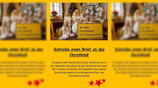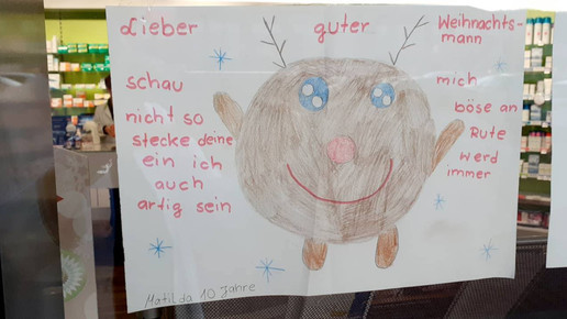 Eine andere Spendenaktion führt die Margareten-Apotheke in Münster durch: Unter dem Motto „Backen und Spenden“ gehen alle Erlöse an die Lokale Allianz für Demenz in Münster-Mauritz. Die Kunden können sich in der Apotheke gegen eine frei gewählte Geldspende ein Backförmchen abholen und so etwas Gutes tun. Für die Kleinsten hat sich Apothekerin Sylke Bergmann ebenfalls etwas überlegt: Die Kinder können direkt in der Apotheke einen Brief an das Christkind schreiben. Dazu wurde eine kleine Bank mit passendem Briefkasten in der Offizin aufgestellt. Die Briefe werden von der Apotheke nach Engelskirchen geschickt, sodass pünktlich zu Weihnachten Post vom Christkind zurückkommt.