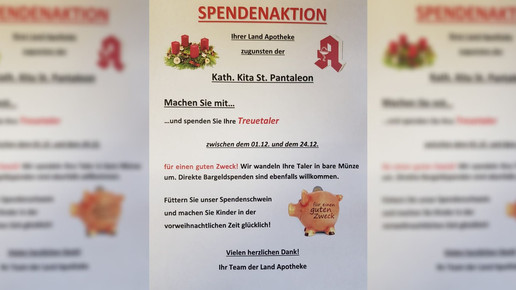 Bisher führen nur zwei der Apotheken – die Carl-Schurz-Apotheke im Stadtteil Liblar und die Land-Apotheke in Erp – die Aktion durch. Abels hatte die Apotheken im April dieses Jahres gekauft und das Taler-System übernommen. Im nächsten Jahr wird auch die Apotheke am Bürgerplatz eigene Taler bekommen und mitspenden. Die gespendete Summe der Land-Apotheke geht direkt an die Katholische Kita St. Pantaleon in Erftstadt, die Einnahmen der Carl-Schurz-Apotheke an das Ambulante Kinder- und Jugendhospiz in Liblar.