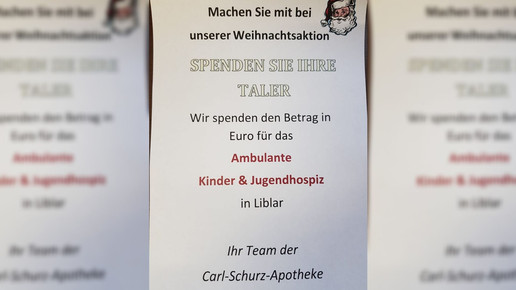 Die Weihnachtszeit lädt den Einzelhandel grade dazu ein, verschiedenste Aktionen zu veranstalten – auch in Apotheken wird die besinnliche Zeit gerne für die Mitmenschen genutzt: Für die Kleinsten gibt es häufig verschiedene Mal- und Bastelaktionen, die Erwachsenen werden dazu aufgefordert, für einen guten Zweck zu spenden.