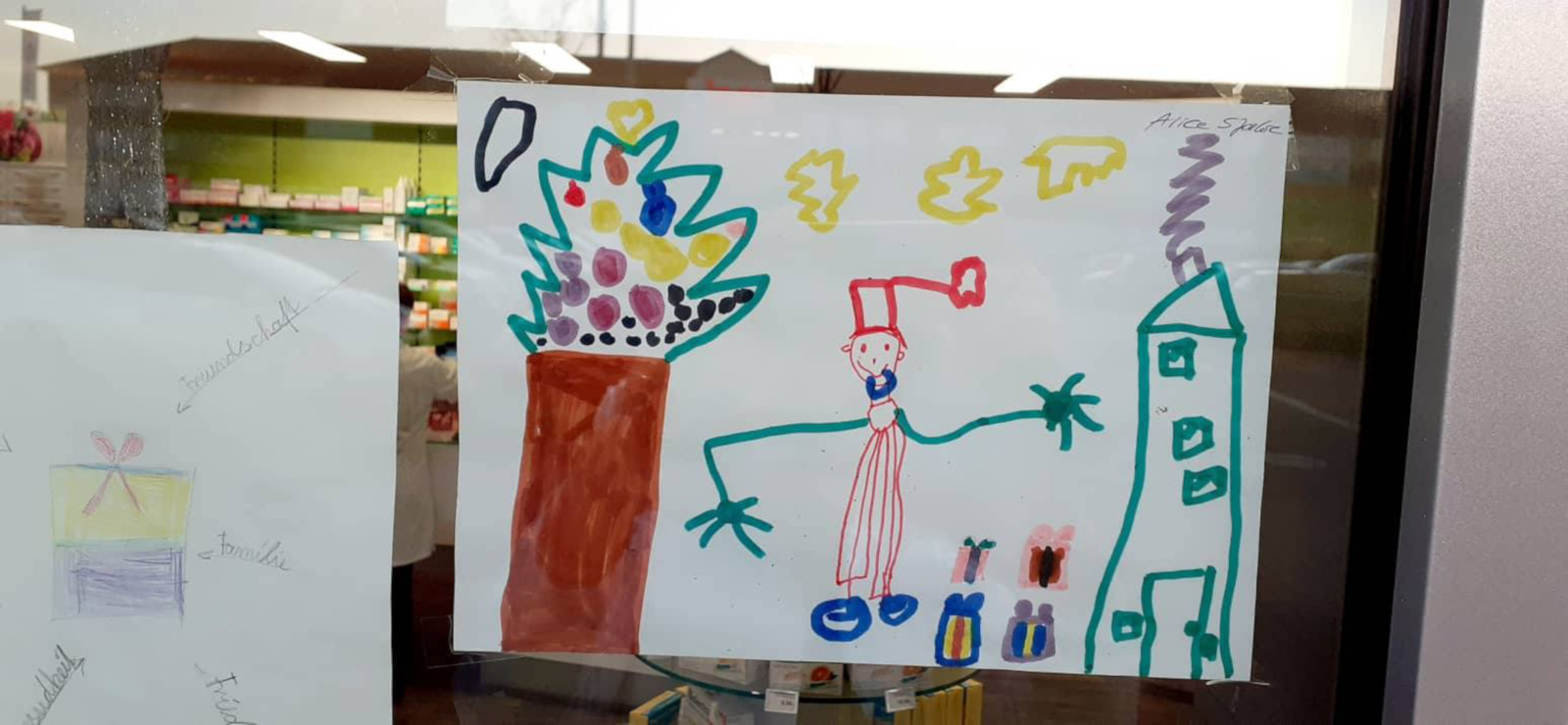 Da die Aktion so gut angenommen wird, können die Bilder jedoch leider nicht mehr im Schaufenster aufgehängt werden – der Platz reicht einfach nicht aus. „Wir haben das früher gemacht, das Schaufenster sah aus wie ein Schachbrett“, lacht Wiegert. Damit sich keins der Kinder vernachlässigt fühlt oder traurig ist, mussten die Wiegert-Brüder schweren Herzens auf das Aufhängen im Schaufenster verzichten. Stattdessen werden die Bilder nun für jedermann sichtbar in der Offizin ausgelegt und mit zusammen mit jedem Kind das abgegebene Kunstwerk bestaunt.