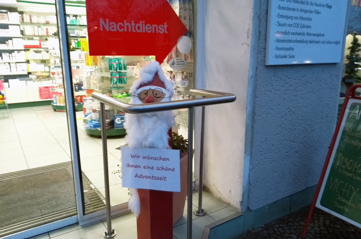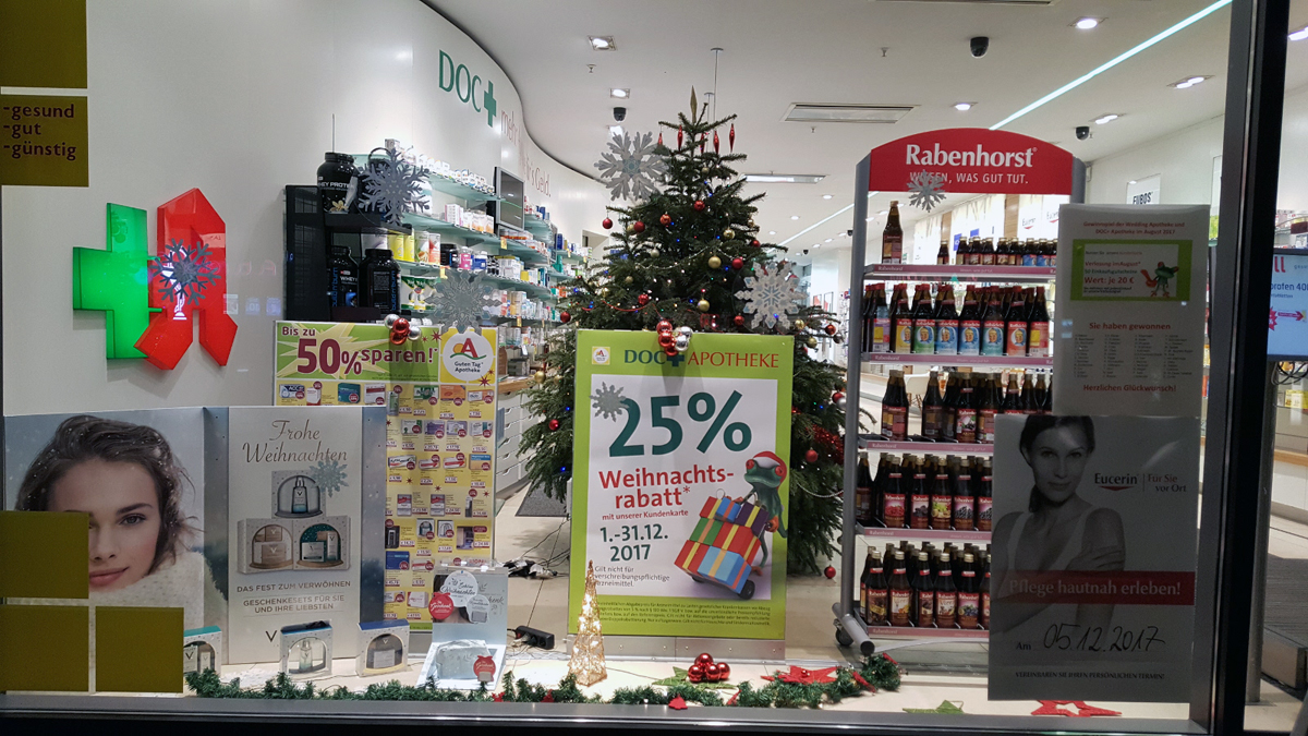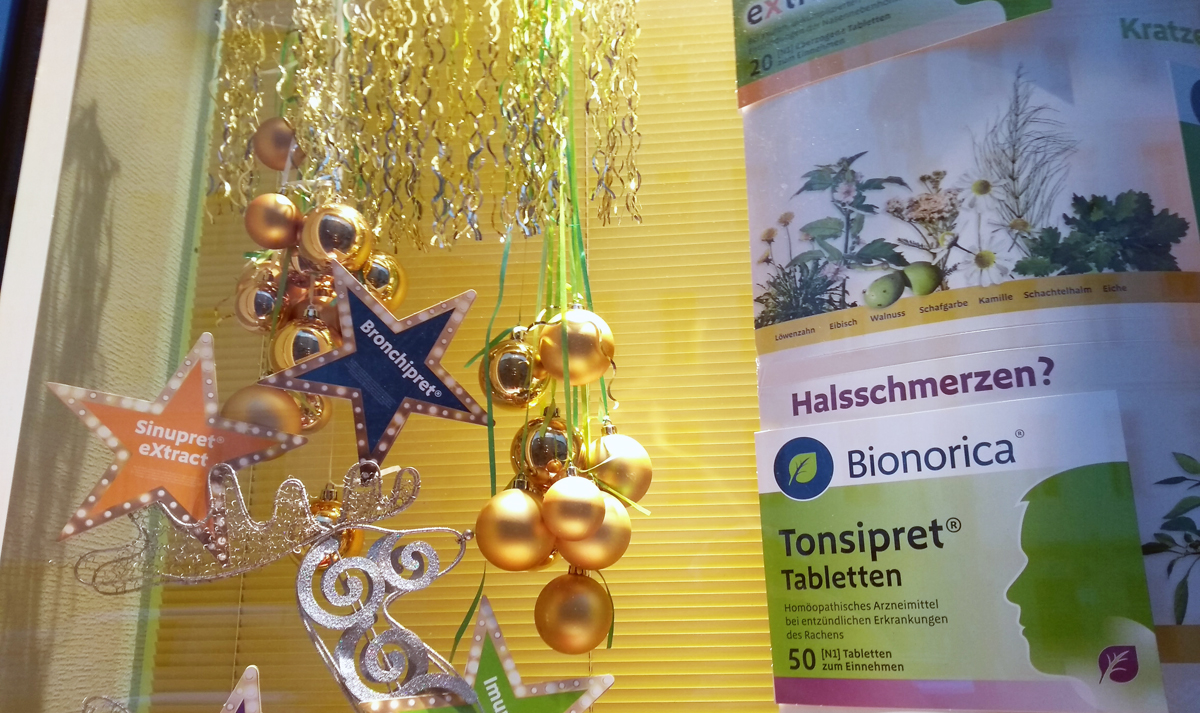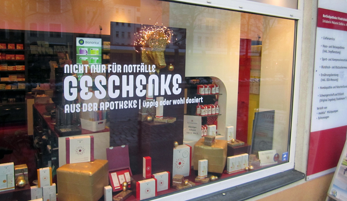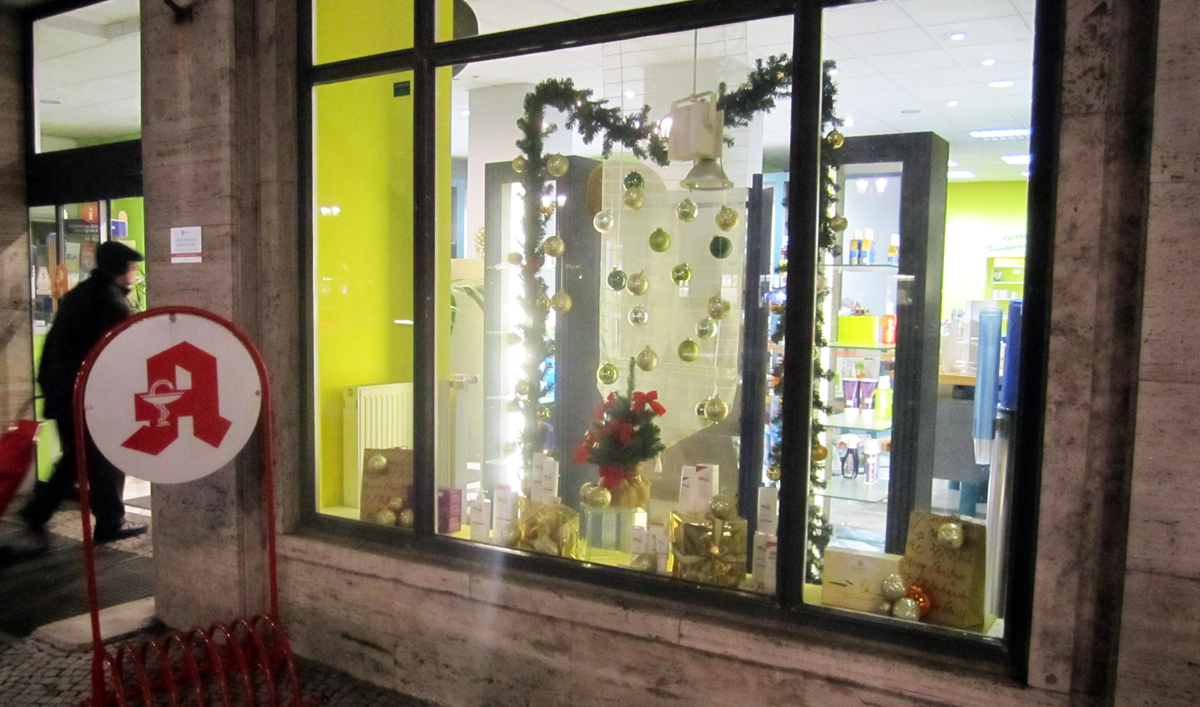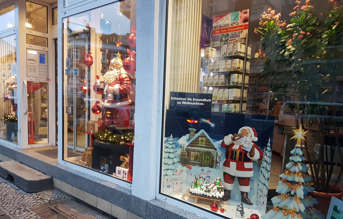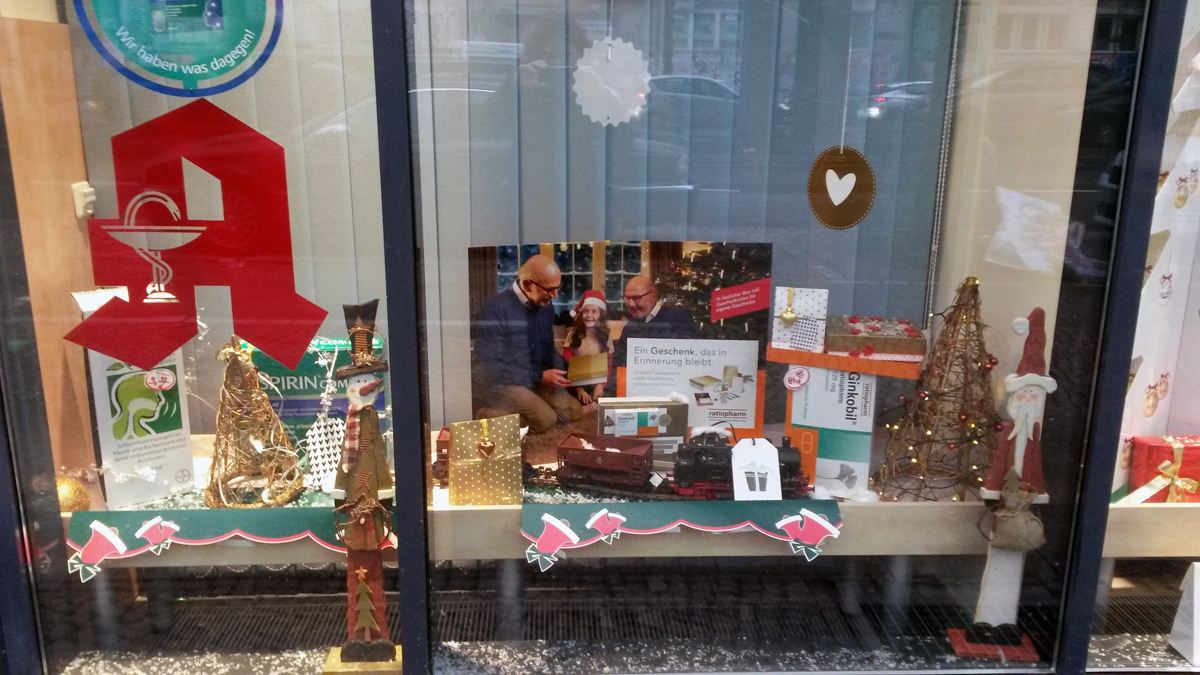 Nicht nur die Produkte selbst sollen zu Weihnachten die Kunden in die Apotheken locken, sondern auch die Dekoration. Da fahren Bimmelbahnen im Schaufenster, Rentiere und Weihnachtsmänner sorgen ebenfalls vielerorts für die richtige Stimmung. Mittendrin werden wahlweise Erkältungspräparate oder Geschenkideen wie Kosmetika zur Schau gestellt. Wie die Kollegen – zum Teil mit eifriger Unterstützung der Hersteller – ihre Auslagen dekorieren, sehen Sie hier!