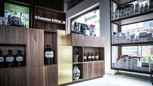 Wnendt entschied sich bewusst gegen eine klassische weiße Inneneinrichtung: „Wir sind ein historisches Städchen und haben viel Fachwerk in der Umgebung.“ Ein steriles Design hätte daher gar nicht gepasst. „Weiße Apotheken und das Präsentieren in weiß ist einfach nicht mehr zeitgemäß“, sagt sie. Daher trage ihr Team auch keine Kittel mehr, sondern beerenfarbene Shirts mit weißen Hosen. Die Kleidung und das Design solle nicht steril wie in einer Arztpraxis wirken, sondern eine Wohlfühlatmosphäre schaffen.