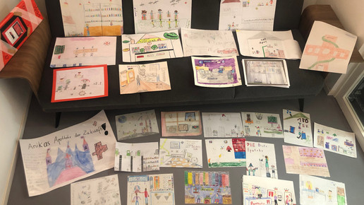 Für die Kleinen gab es einen Malwettbewerb zum Thema Apotheke der Zukunft: Die Siegerehrung übernahm Shary Reeves, bei den Kindern bekannt aus der TV-Sendung „Wissen macht AH!“. „Wir haben über 30 Kunstwerke erhalten“, sagt Wnendt begeistert. Sogar eine ganze erste Schulklasse habe teilgenommen. Für die Gewinner gab es Einkaufsgutscheine des benachbarten Spielzeuggeschäfts und Buchladens. Die erste Klasse wird die Apotheke demnächst besuchen und den „Roboter“ im Keller bestaunen. Alle Kunstwerke werden zudem im Schaufenster ausgestellt.