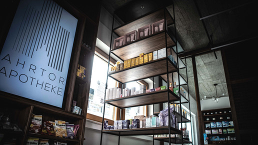 Hohe Sichtbetondecken, ein einfacher Estrichboden und digitale Sichtwände: Linda Wnendt kombiniert in ihrer Ahrtor-Apotheke alte Traditionen mit modernem Minimalismus. Der Umbau stellte das Team vor Herausforderungen und brachte viele Veränderungen mit sich. Die neue Inneneinrichtung ist alles andere als typisch und kommt an. In den sozialen Netzwerken wird bereits gefragt, ob der Standort als Partylocation zu mieten ist.