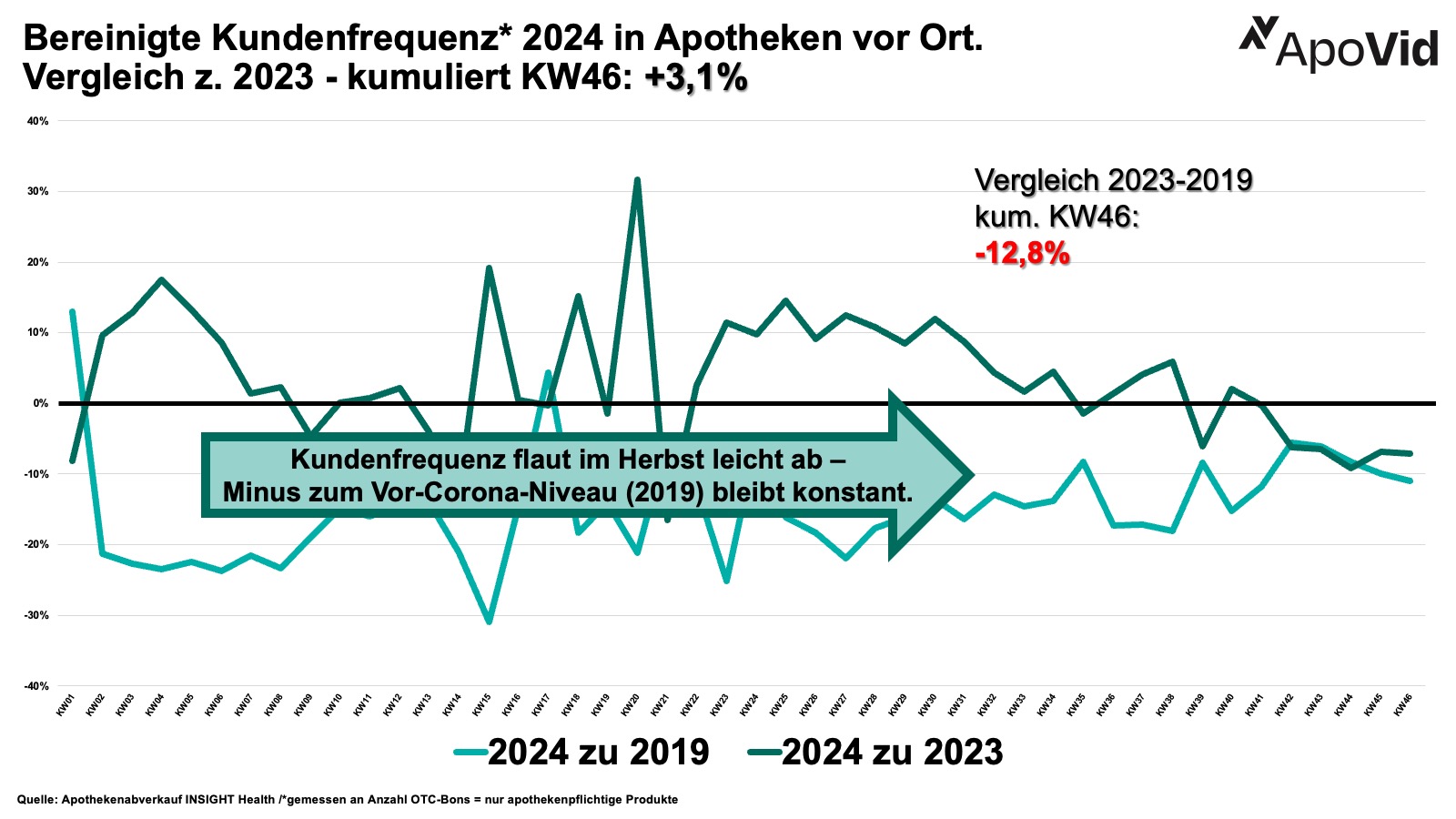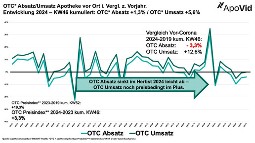 Zumindest relativ gesehen könnte 2024 noch halbwegs versöhnlich enden: Denn in den letzten Wochen des Vorjahres waren die OTC-Abverkäufe wegen der ausgebliebenen Erkältungswelle zweitweise zweistellig eingebrochen. Dieser Rückstand könnte in diesem Jahr noch aufgeholt werden.