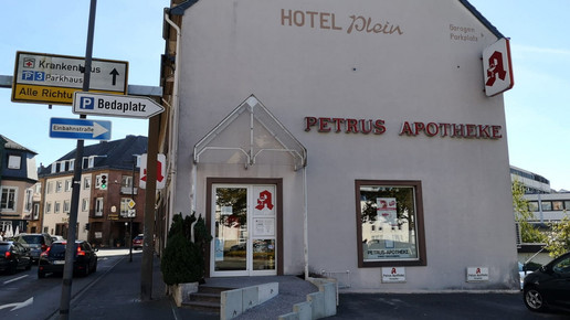 Ein ganzes Areal am Ende der Haupteinkaufsstraße in Bitburg mit vielen kleinen Einkaufsgeschäften soll für das neue Einkaufszentrum weichen. Einzige Ausnahme ist das Gebäude der Petrus-Apotheke ganz am Rand des geplanten Galerie-Gebiets. Eigentlich wollten die Investoren auch das Haus von Apotheker Robert Queckenberg erwerben und anschließend abreißen. Doch dieser weigert sich standhaft, die Apotheke, die er seit 50 Jahren führt, aufzugeben.