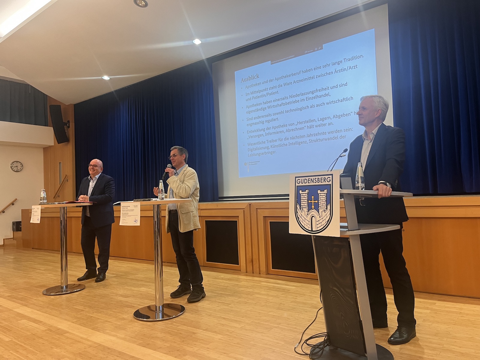 Umso bemerkenswerter war der gestrige Abend, zu dem das Evangelische Forum Schwalm-Eder ins Bürgerhaus Gudensberg eingeladen hatte. Unter dem Motto „Gesundheitsversorgung im ländlichen Raum – Herausforderungen und Lösungen zur Versorgung mit Landarztpraxen, Apotheken, Krankenhäusern“ sollte über die Herausforderungen in der Gesundheitspolitik gesprochen werden. Dass Franke seinen für Arzneimittel und Apotheken zuständigen Abteilungsleitungsleiter Thomas Müller mitbrachte, ließ nur eine Lesart zu: Der SPD-Politiker wollte in seinem Sprengel der Kritik an der Apothekenreform den Wind aus den Segeln nehmen.