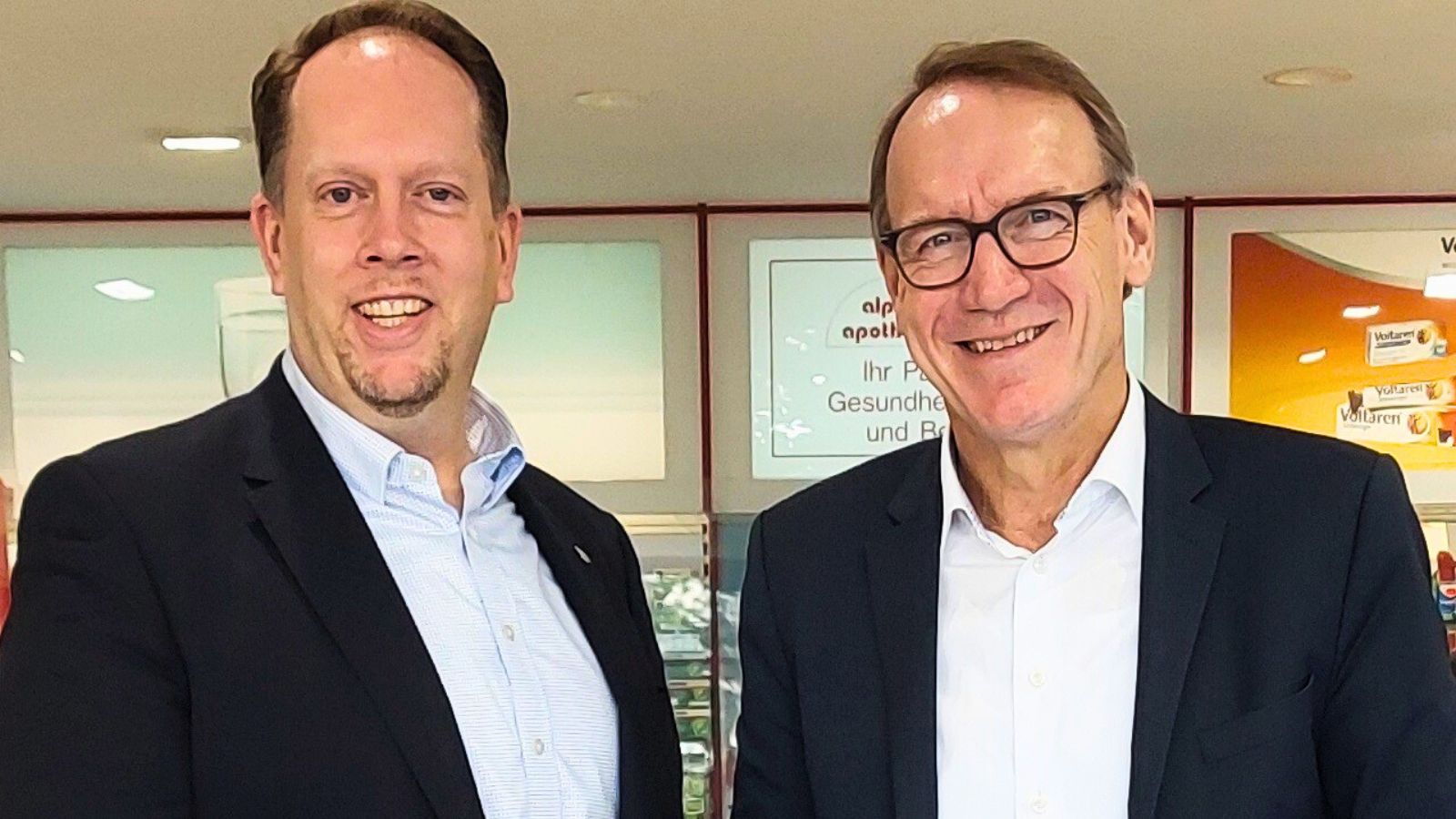 Der Vorsitzende des Apothekerverbandes Nordrhein (AVNR), Thomas Preis, hatte Besuch in seiner Apotheke: Der Landtagsabgeordnete (MdL) Marco Schmitz von der CDU schaute in der Kölner Apotheke vorbei.