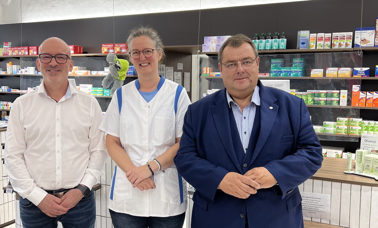 Die Apothekerin nutzte die Gelegenheit, mit dem Abgeordneten auch über die Probleme des Apothekenreformgesetzes (ApoRG) von Gesundheitsminister Karl Lauterbach (SPD) zu sprechen. „Es ist unglaublich, dass ein Mediziner und Professor die Apotheken so beschneiden will. Dabei ist das Gebot der Stunde, die Apotheken zu stärken und nicht weiter zu schwächen“, erklärte sie dem Abgeordneten. Hintergrund dieser Äußerung ist der Referentenentwurf zum ApoRG, der unter anderem Apotheken ohne Apotheker vorsieht.