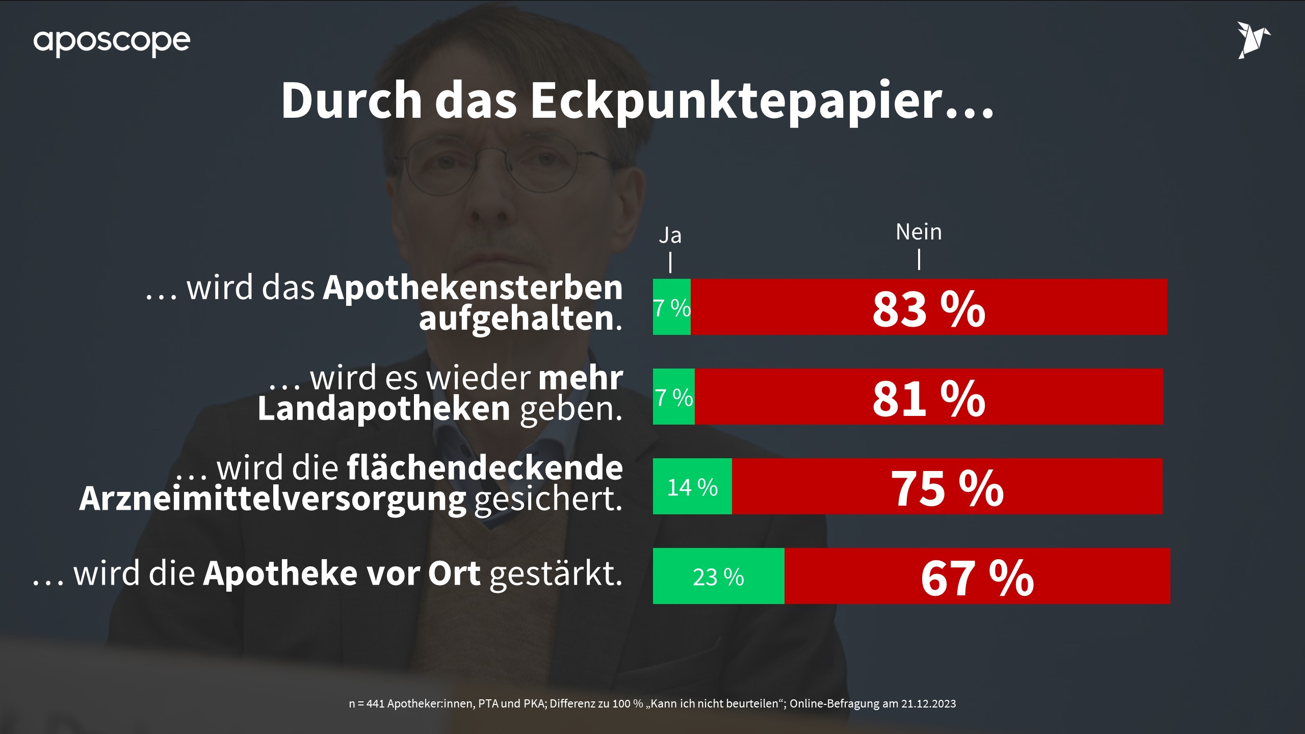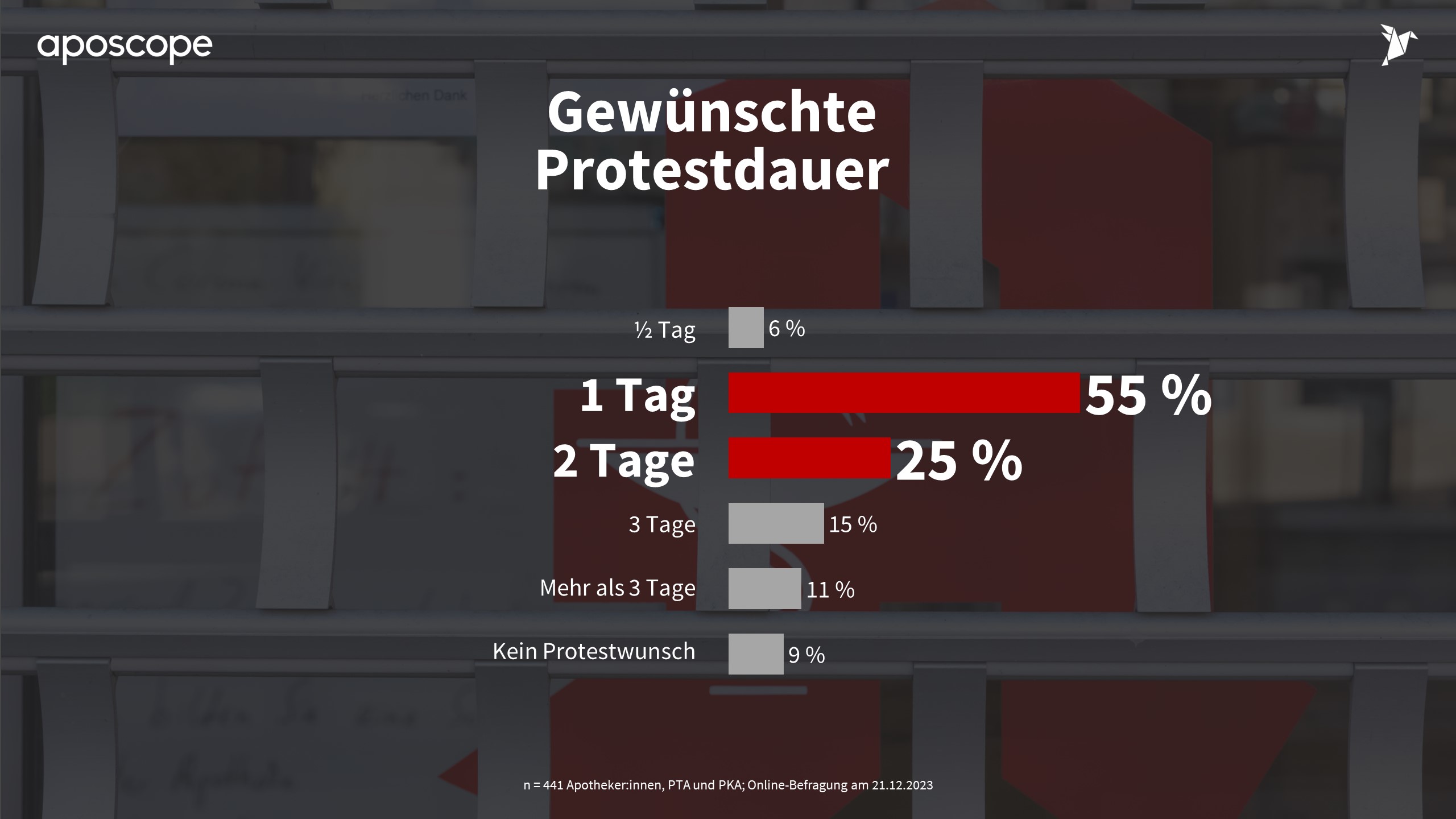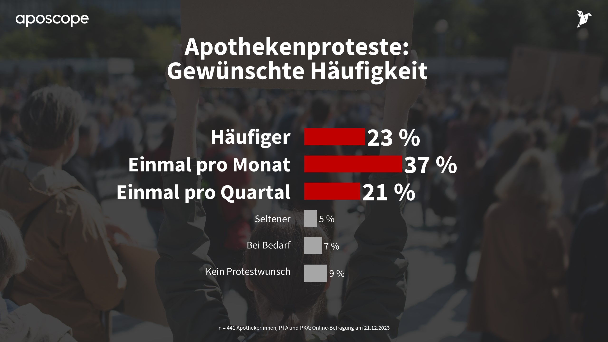 Zur Methodik: An der Online-Blitzbefragung von aposcope am 21. Dezember 2023 nahmen insgesamt verifizierte 441 Apotheker:innen, PTA und PKA teil.