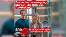 Bei einem von der SPD-Landesgruppe Rheinland-Pfalz organisierten Treffen ging es am Mittwochabend in Trier um die „aktuellen Herausforderungen unserer Gesundheitsversorgung mit dem Fokus auf die Lage der Apotheken“. Eingeladen zur Diskussionsveranstaltung hatten die Bundestagsabgeordneten Verena Hubertz und Matthias Mieves.