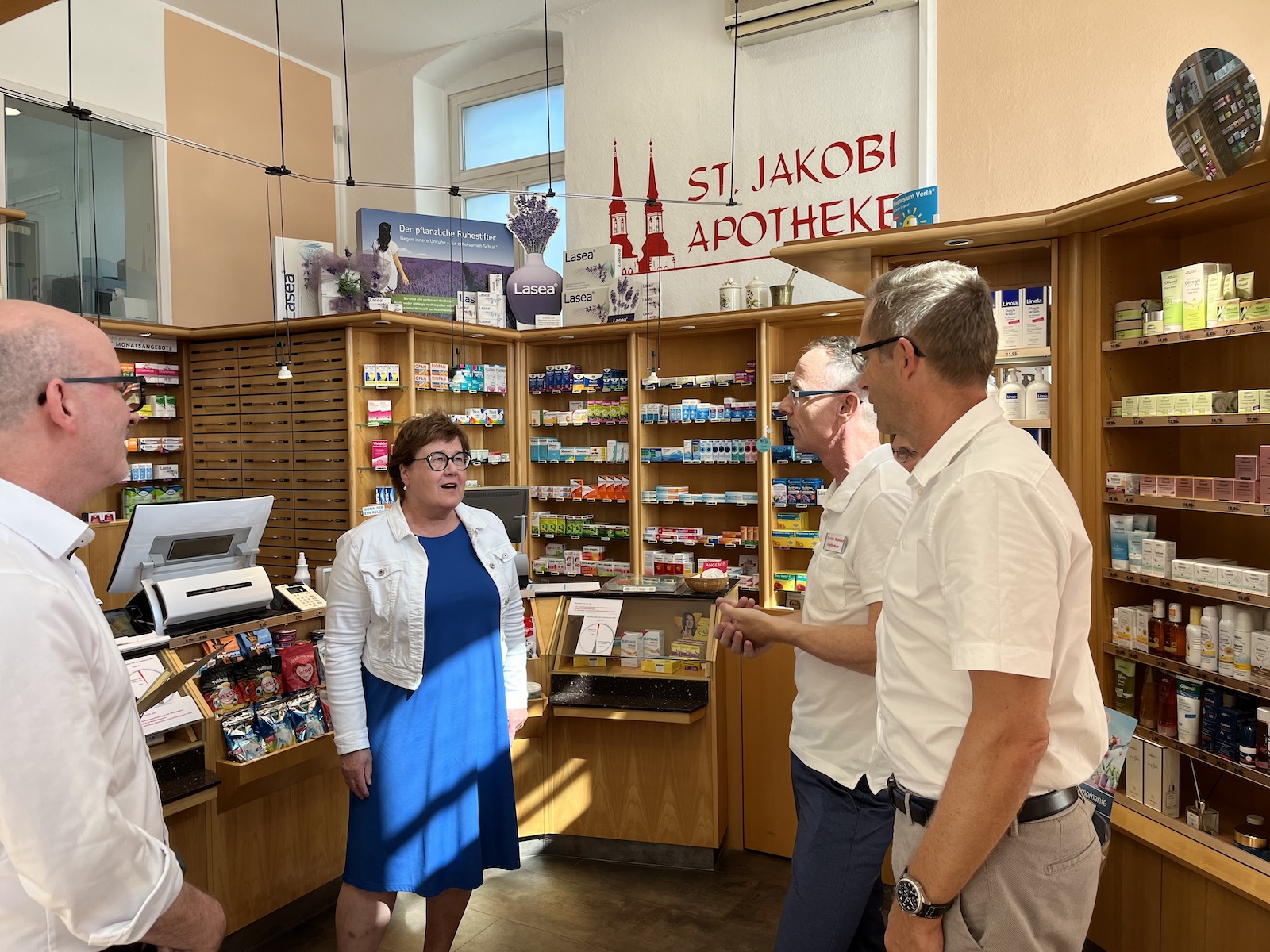 In der vergangenen Woche besuchte die Gesundheitsministerin auf Einladung von Inhaber Carsten Müller gemeinsam mit Landrat Markus Bauer (Salzlandkreises) die St. Jakobi Apotheke in Schönebeck. „Apotheke ohne Apotheker kann und darf es nicht geben. Dafür werde ich mich intensiv einsetzen“, versprach Grimm-Benne.