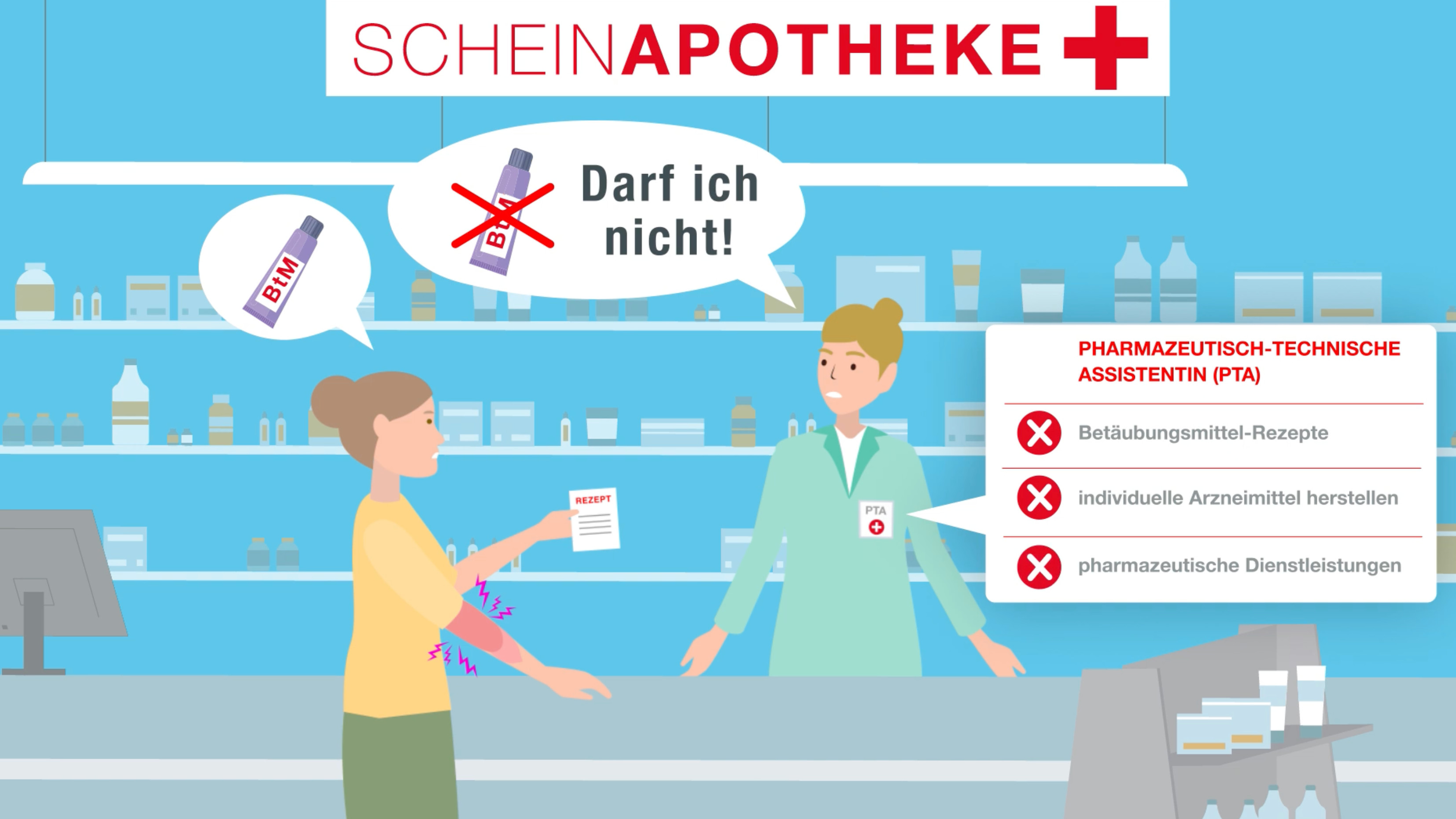 Im Video – das entgegen der persönlichen und emotionalen Plakatkampagne eine Animation ist – geht es um die Abgabe eines Schmerzmittels und beginnt mit der Aussage: „Stellen Sie sich vor, Sie haben nach einer OP kaum auszuhaltende Schmerzen und benötigen ein Schmerzmittel.“ „Die Abda reduziert es aber auf eine Tube mit der plakativen Aufschrift ,BtM' und schreibt dazu „das bekommen Sie nicht“. Hier stelle sich uns die Frage: Warum suggeriert die Abda dem Laien, dass eine PTA nicht in der Lage sei, Schmerzmittel abzugeben? „Dies ist unseres Empfindens nach, eine geschickte Täuschung der Patient:innen, denn diese erkennen nicht den Unterschied zwischen starken Schmerzmittel und BtM“, so der BVpta.