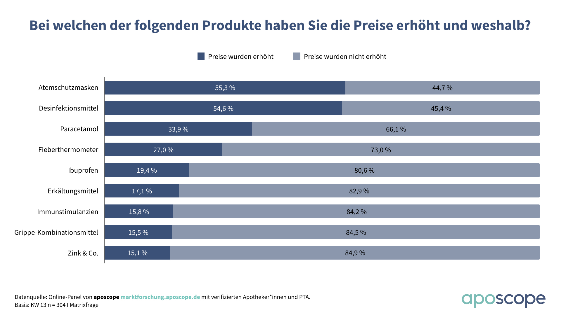 Mitte März hielt der Boom mit einem Plus von knapp 27 Prozent noch an. Dann folgte der Absturz: In der letzten Märzwoche sank der OTC-Absatz um 23 Prozent gegenüber dem Vorjahr.