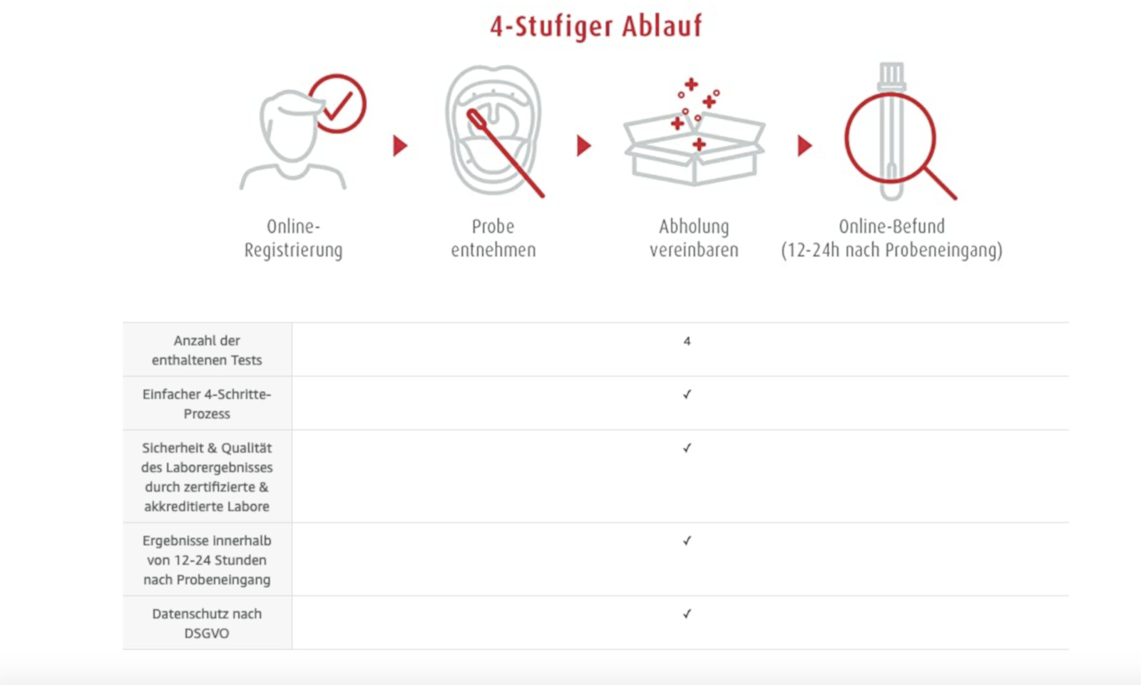 Die Sicherheit und Qualität der Ergebnisse wird durch zertifizierte und akkreditierte Labore versprochen, als durchführendes Labor werden die „Dr. Bauer Laboratoriums“ genannt. Dennoch enthält das Angebot den Hinweis, dass der Test einen Abstrich, der von medizinischem Fachpersonal durchgeführt wurde, nicht ersetzen kann – und in der Regel von den Gesundheitsämtern nicht als ausreichend angesehen wird, um eine bestehende Quarantäne-Anordnung bei einem negativen Testergebnis aufzuheben.