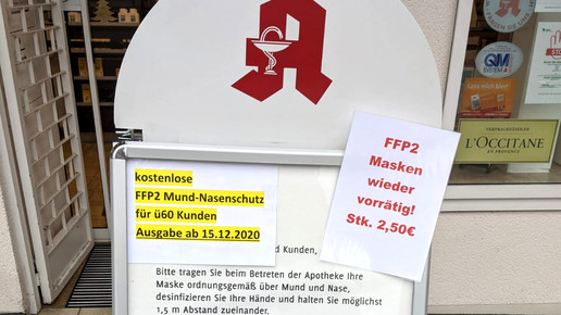Ab Januar dürfen Apotheken die Masken nur noch abgeben, wenn der Kunde einen entsprechenden Coupon vorweisen kann. Die Krankenkassen sollen ihren Versicherten fälschungssichere Bescheinigungen ausstellen. Dann gibt es zweimal sechs Masken – die erste Tranche im Zeitraum vom 1. Januar bis 28. Februar, die zweite im Zeitraum vom 16. Februar bis 15. April.