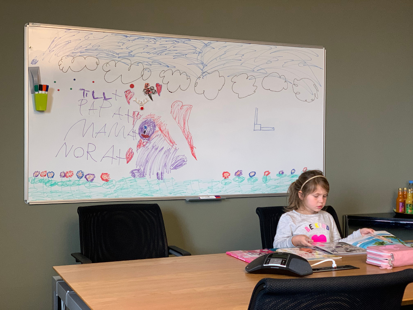 Wer aufgrund seiner Tätigkeit auf jeden Fall vor Ort sein muss, darf seine Kinder mit zur Arbeit bringen. Für diese gibt es ab morgen in der Kantine eine eigene Kinderspeisekarte. Morgen stehen Milchreis, Pommes & Nuggets, Nudeln mit Tomatensauce und Eierkuchen auf dem Plan. Alle Kinder essen auf Firmenkosten. „Wir möchten unseren Mitarbeitern das Gefühl geben, dass sie nicht allein stehen“, so Gollmann. Vermutlich werde dann ab morgen eine Kollegin die Betreuung übernehmen – eine Art improvisierte Betriebskita.