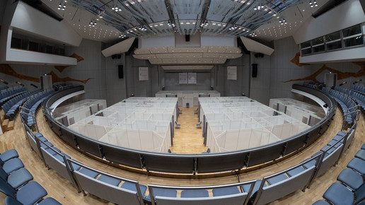 Nächste Station: die Liederhalle, nur wenige Hundert Meter vom Kühlraum entfernt. Hier und nicht in der Apotheke soll der Impfstoff rekonstituiert werden, wie Hennig erklärt. Hintergrund ist, dass es keine Stabilitätsdaten für den Transport des fertigen Imfpstoffs gibt, entsprechend versuche man, eine mechanische Belastung etwa durch Schütteln zu vermeiden. Andererseits sei die Rekonstitution auch keine Herstellung, sondern eine ärztliche Tätigkeit, sodass diese besser vor Ort durch medizinisches Personal durchgeführt werde. Ohnehin sei spätestens eine Stunde nach Zubereitung mit der Impfung zu beginnen.