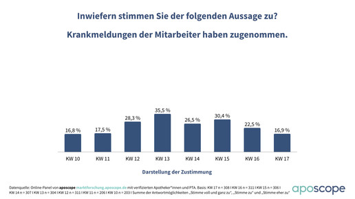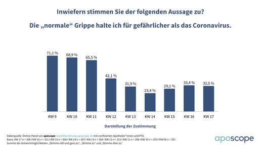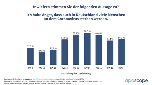 aposcope befragt seit dem 25. Februar 2020 jede Woche verifizierte Apotheker und PTA online zum Thema Coronavirus. An der aktuellen Umfrage zur „Zahl der Woche“ nahmen am 21. April 2020 insgesamt 308 Apotheker und PTA teil. Die Umfrage ist repräsentativ für die deutsche Apothekenlandschaft.