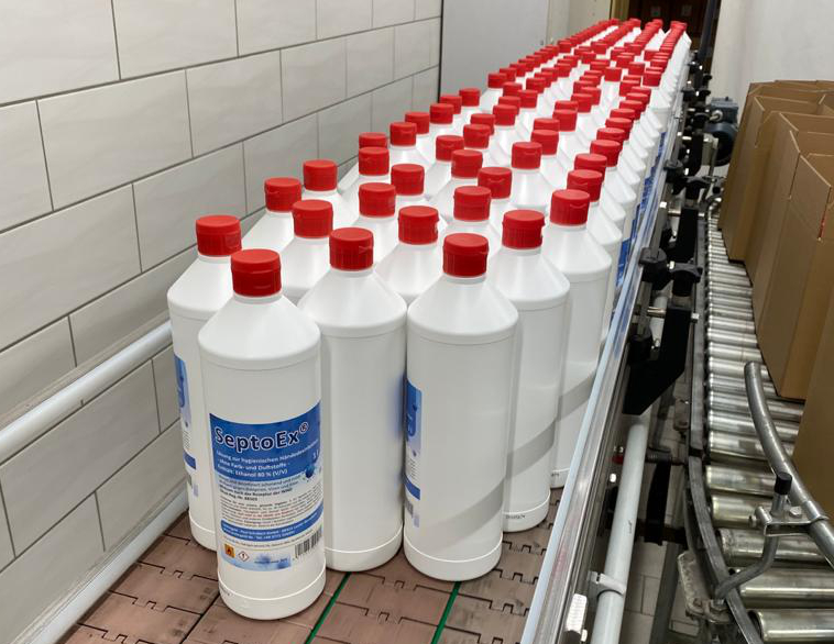 Apropos Preis: Günstig ist SeptoEx nicht. Der Großhandel zahlt zwischen 80 und 90 Euro für einen 10-Liter-Kanister. Dafür sei die Qualität auch höher als bei anderen Produkten. So dürften Apotheken derzeit aus Bioethanol Desinfektionsmittel herstellen. Doch diese Vorstufe des Trinkalkohols sei weniger rein und normalerweise nicht für den Privatgebrauch zugelassen, erläutert Haupt. Wenn die Ausnahmegenehmigung ausläuft, werde sich Qualität durchsetzen, ist der Geschäftsführer überzeugt. Deshalb will er das Geschäft mit Desinfektionsmitteln zu einem zweiten Standbein ausbauen. Seit dieser Woche ist auch eine 1-Liter-Flasche verfügbar.