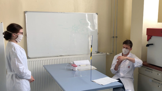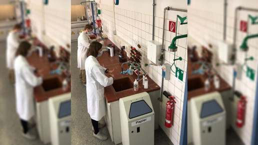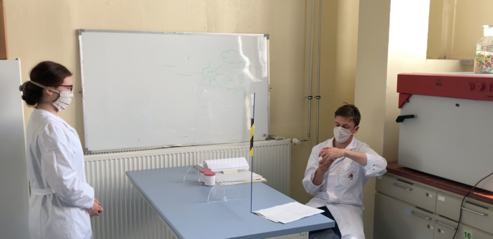 FISCHER: In meiner Abteilung, der pharmazeutischen Technologie, hat das Praktikum Arzneiformenlehre stattgefunden. Wir mussten einiges vorbereiten, um die vorgeschriebenen Hygiene- und Distanzmaßnahmen der Stadt und der Universität einhalten zu können. Dazu mussten wir die Praktika umstrukturieren und die umgesetzten Maßnahmen vor dem Betrieb von der Universität abnehmen lassen. Normalerweise finden zwölf Studierende Platz im Labor, nun dürfen es aufgrund der Abstandsregelungen jedoch nur noch drei sein. Das hat sich nur realisieren lassen, weil wir im Moment eine nicht besetzte Professur haben und die Räume dadurch zur Verfügung stehen – zehn Praktikumsräume sind normalerweise nicht einfach so verfügbar. Außerdem müssen wir den Studierenden Räumlichkeiten für die Mittagspause zur Verfügung stellen.