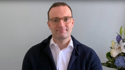 Vor hellgrauer Wand neben einem Blumenstrauß in weißem Hemd und blauer Strickjacke bedankt sich der Gesundheitsminister nach einem kurzen „Hallo, hier ist Jens Spahn“ zunächst für die vielen Genesungswünsche, die ihn erreicht hätten. „Mir geht's soweit den Umständen entsprechend ganz gut. Die Erkältungssymptome sind bisher jedenfalls, toi toi toi, nicht stärker geworden.“