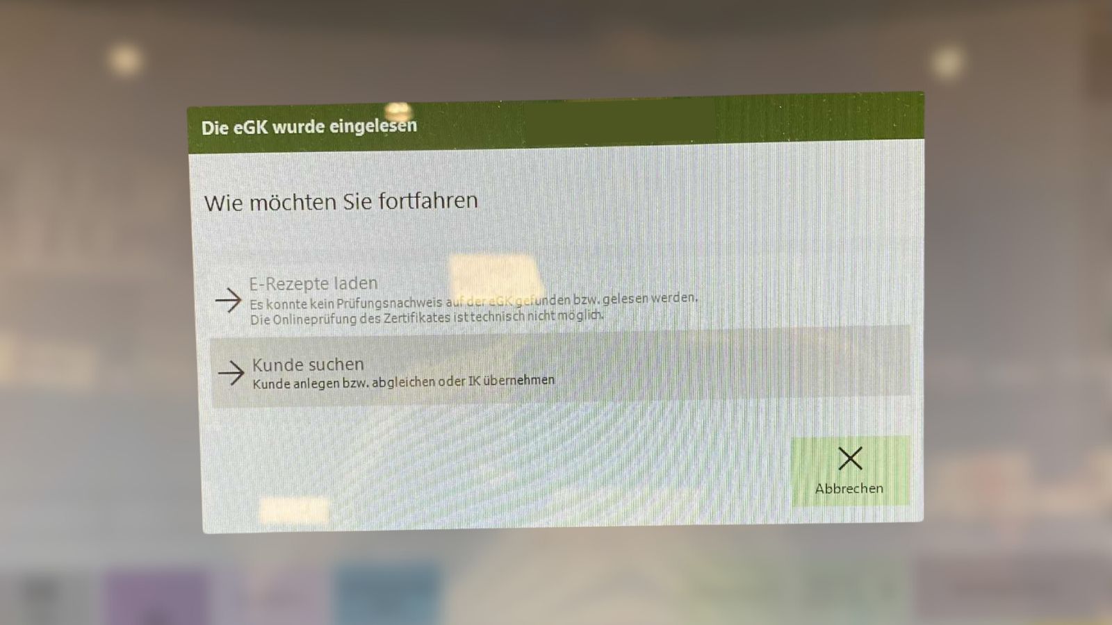 Ein Apotheker aus Thüringen berichtet, dass er seit dem Morgen keine Karten der AOK Plus mehr einlösen kann. In anderen Apotheken sind auch Karten von TK-Versicherten betroffen, teilweise auch von Barmer-Versicherten.