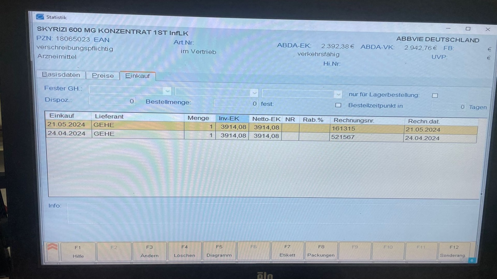 Da Skyrizi nicht an Lager gewesen sei, habe er das Medikament erst bestellen müssen. „Abgeholt wurde es aber vom Patienten erst Anfang Juni“, so der Inhaber. Durch einen Apothekenberater fiel die Preisänderung und der drohende 1500 Euro schwere Verlust auf.