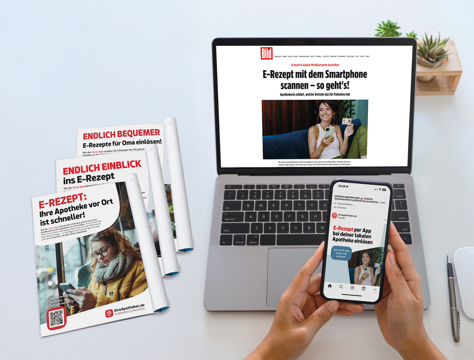 Mit einer umfassenden Werbeoffensive wolle man nun mehr Bewusstsein für die digitalen Services der Vor-Ort-Apotheken schaffen. Im Fokus stehe die einfache Einlösung von E-Rezepten bei den lokalen Apotheken mittels iA.de. Durch gezielte Print-, Außen- und Digitalwerbung sollen bundesweit Millionen Menschen erreicht werden.